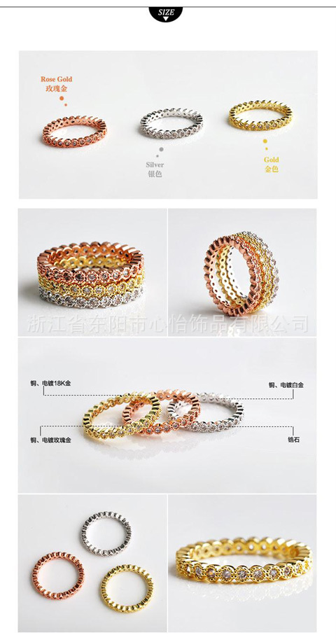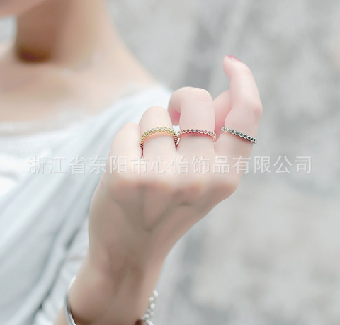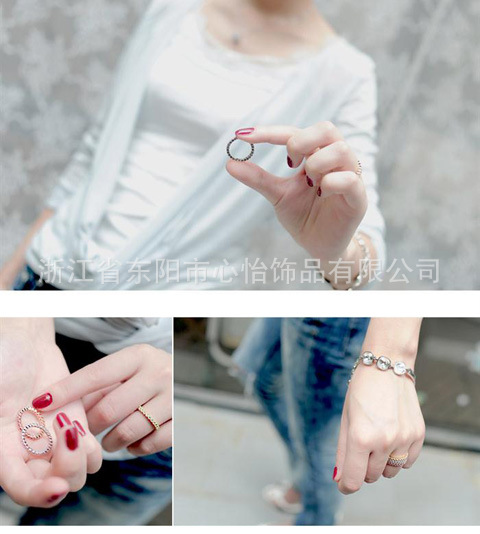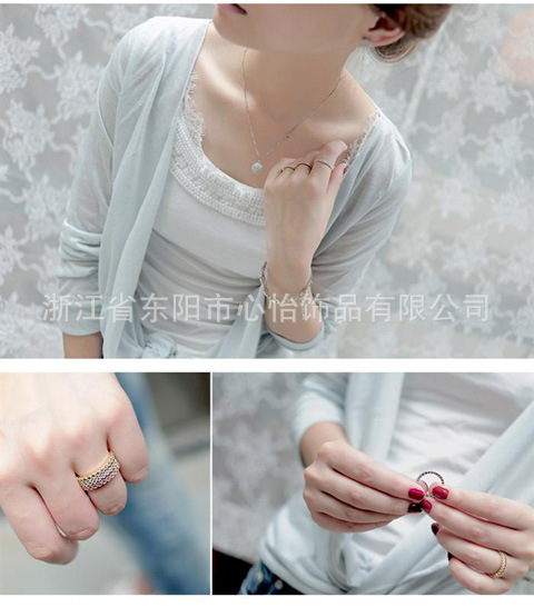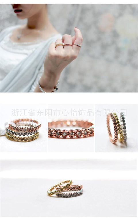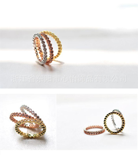 韩版时尚锆石多层指环饰品 简约百搭 女款精品戒指 蜡镶微镶