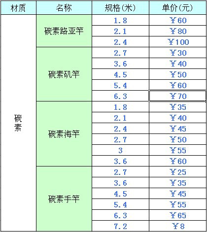 以上碳素路亚竿长度分别为:1.8米 、2.1米、2.4米