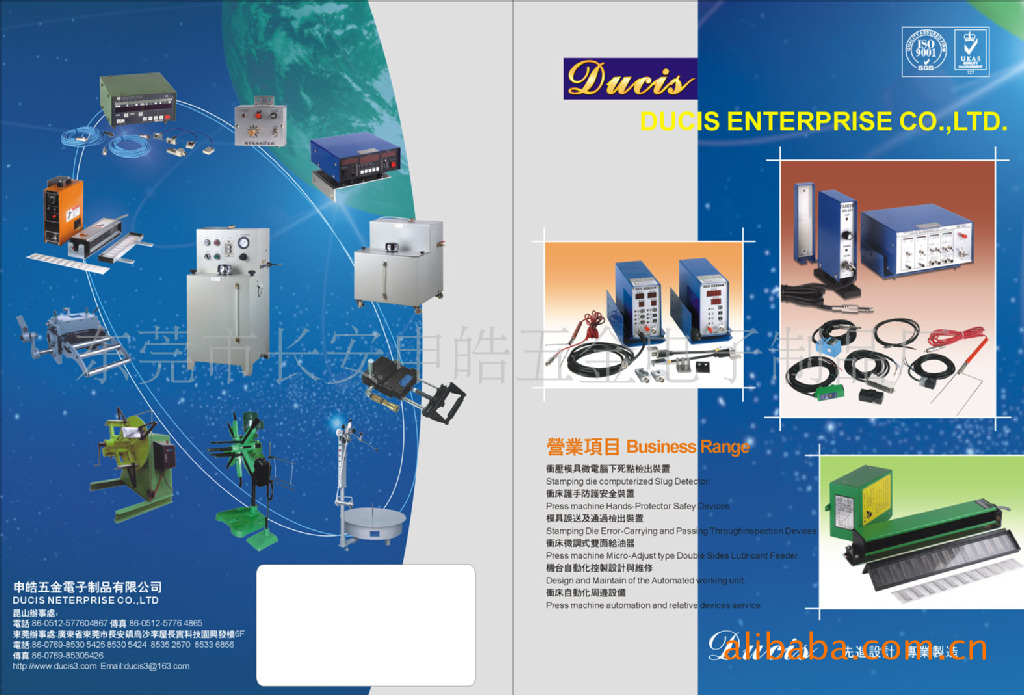 ●多功能模具安全检出装置、成品光电通过检出装置:SD-101、SD-201/SD-202,自动化的先驱,多功能监视系统。针对连续冲压设计,取代人工监视、材料中断、弯曲挤料、送料不足、送料过长、落料不良、成品吹出等,均可适时检出停机,以保护模具及冲床并防止不良品的产生。