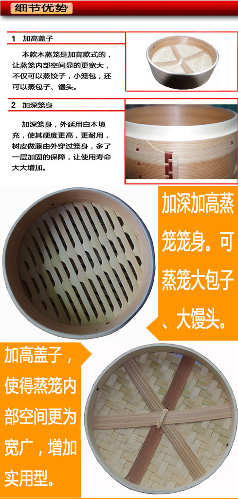 誉为无化学毒性的良好蒸熟器,闻名中外。 黄家蒸笼的制作技艺,看似简单,实则繁难精湛,要使其完工后具备易熟保温、透气不