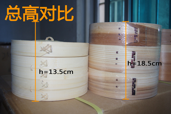 除了大小不同,蒸笼的形态和工艺也各有所异,这些来自北京、上海、台湾、香港和国外的不同订单产品中,有的底屉用的是竹