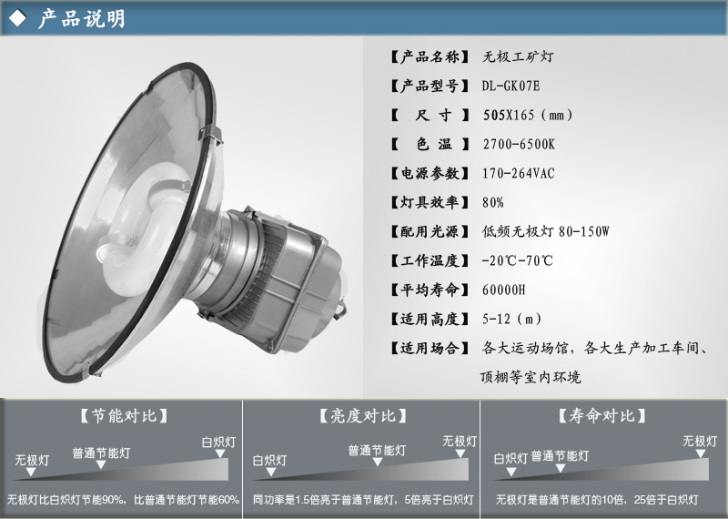 无极灯厂家供应质优价廉高效节能工矿灯,节能80%,质保五年
