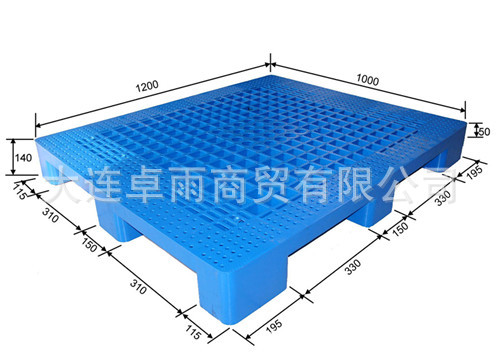 产品描述: 塑料托盘是物料储运业的产品,搬运仓储的好助手,与钢托盘,木托盘相比具有质轻、平稳,美观整体性好,无钉无刺,无毒无味。耐酸碱,不腐烂,不易被细菌繁殖,易清洗消毒,不助燃,无静电,无火花,防暴,防滑溜,回收价值高等特点。使用寿命是木托盘的8-9倍。现已广泛应用化工,石化,食品,饮料/啤酒,水产品,医药,烟草,饲料,制衣,制鞋,电子电器,玻璃,港口,码头等诸多行业是现代化运输的包装仓库及产品出口的重要必备的器材工具。 主要原料:是一些高强度的原料(HDPE)。其性能强度高,承受力大,使用寿命长。 塑料托盘的优势: 1.在耐腐蚀方面,熟料托盘最好,塑木次之,钢托盘最差; 2.在耐潮湿性方面,塑料托盘性能优异; 3.在耐虫蛀性上,钢托盘最好,塑料托盘次之; 4.在平均寿命方面,钢托盘和塑料托盘难分伯仲; 5.在使用性能上,塑料盒钢托盘均优於纸,木托盘; 6.在托盘价格上,木托盘有优势,纸和塑木次之,钢托盘最贵。 | 适用范围:电动叉车、机械叉车、手动叉车。 |