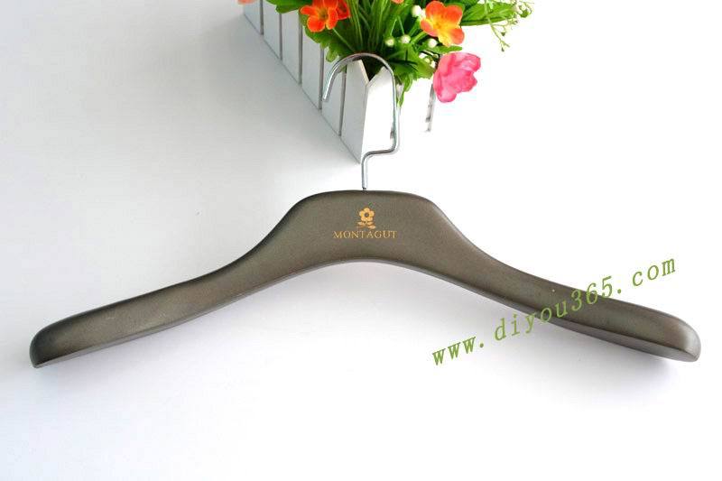 配件及其它:镀铬,珍珠镍,黄/红古铜,黑镍,枪色等。表面颜色客户随定,一般有原木色,酒红色,黑色白色等。表面处理亦随客户自定,一般有喷普通单色油漆,手擦漆,水洗白,磨砂效果等处理。木质衣架长度不分,肩宽厚度不定,客户可根据自己需求定制,男款一般长45CM,女款长39CM,儿童款长28CM。数量,木头材质,长度厚度对衣架价格都有一定影响。