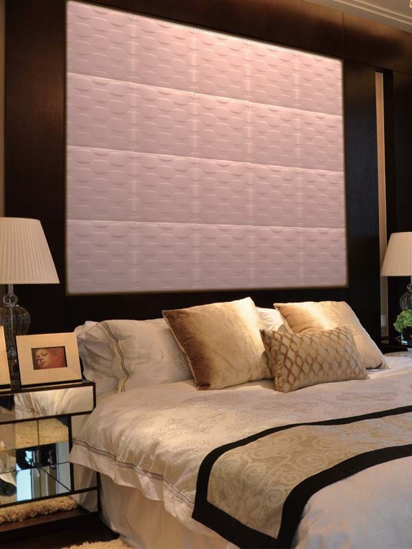 雕皮花3D软包是新型环保材料加工而成,无污染,无辐射;经过70道无毒测试完全合格。