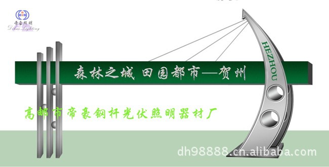 高邮市帝豪钢杆光伏照明器材厂坐落在京杭大运河畔的中国历史文化名城扬州市北郊东接京沪高速,南临沪宁高速,紧靠润扬大桥、宁启铁路。地理位置优越,交通快捷方便。是专业生产各类路灯、灯杆灯具加工、电光源产品的科研、生产及太阳能照明研究、应用为一体的高新科技企业。