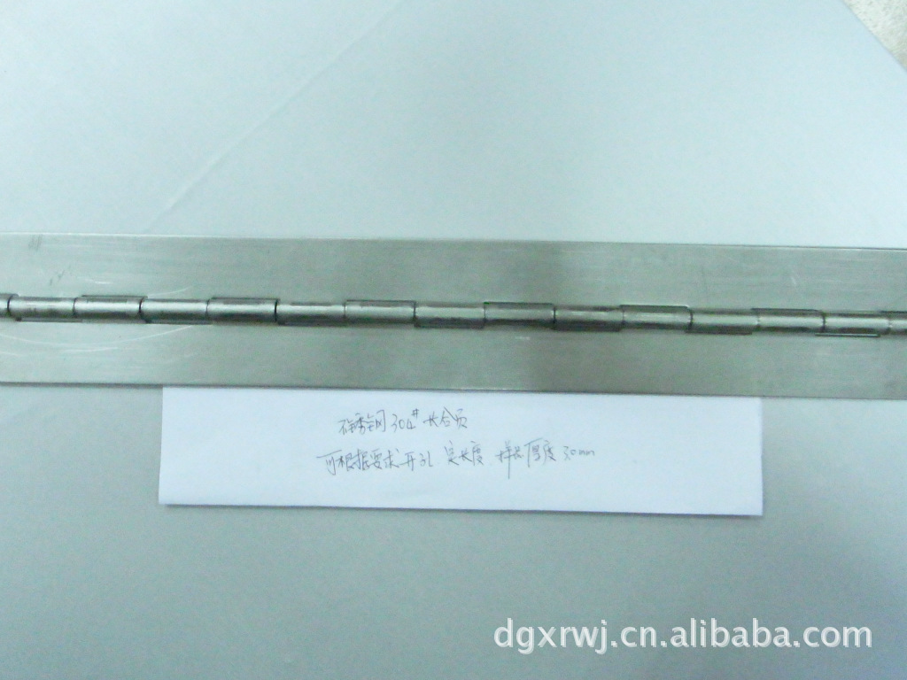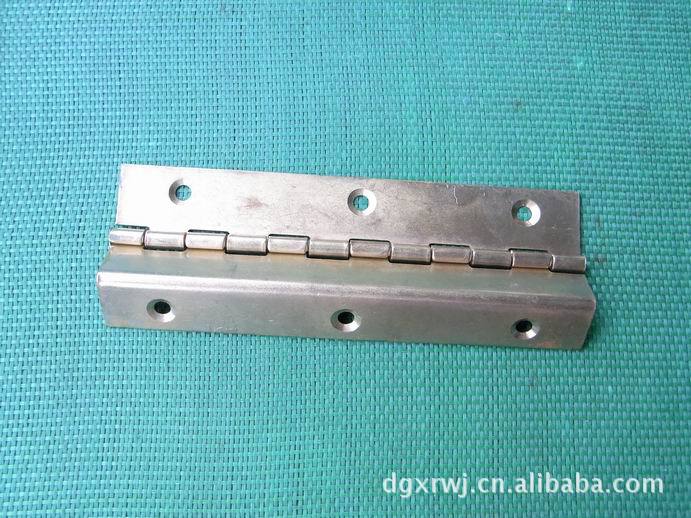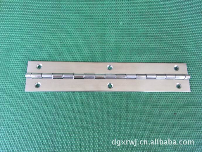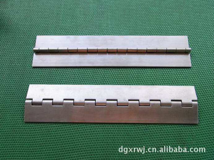 二,钢琴合页:钢琴合页长度可以做到200mm----3000mm,.厚度有0.5mm----3.0mm,宽度15mm----100mm,材质有:304#,201#,316#不锈钢,铜材,铝材,铁材等