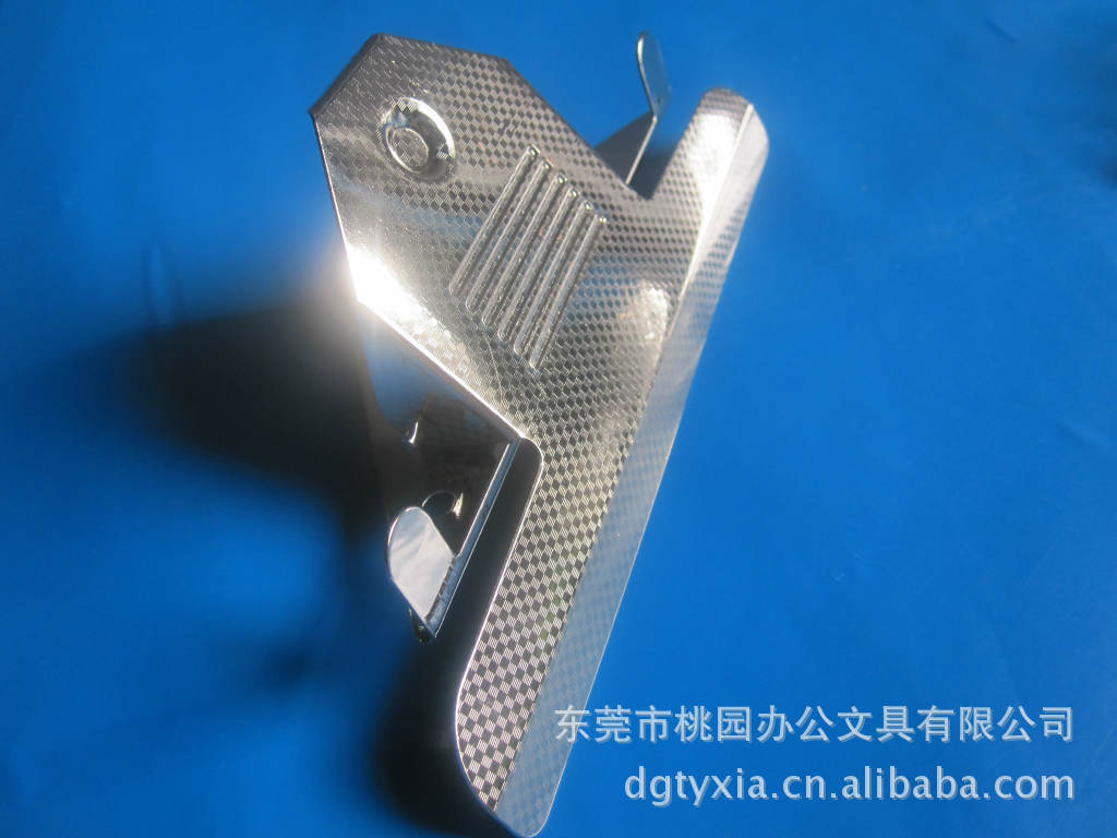 东莞桃园文具生产蝴蝶夹,规格有FC80,FC85,FC120,FC143,表面处理有光纹,点纹,格纹,铆钉距离:47/52/72/74MM,包装方式每箱200/300PCS,蝴蝶夹电镀效果好,不容易生锈耐用强力夹,是高品质客户所需求的。