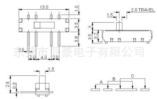 亚豪电子开关厂 是专业生产各种直插开关、贴片开关、拨动开关,滑动开关,轻触开关。叶片开关。按键开关,按钮开关,自锁开关,船型开关,推动开关,震动开关,滚珠开关。耳机插座,声频插座,音频插座,DC插座,直流电源插座玩具开关,数码开关广泛应用于MP3、计算机、数码相机、彩电、空调、冰箱、DVD、玩具、数码科技、等电子设备行业