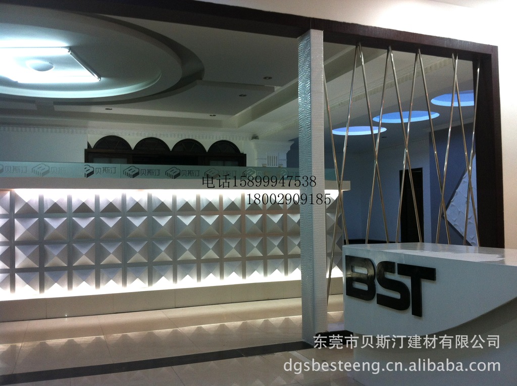 贝斯汀三维板装饰材料经权威部门检测,各项指标全部合格,不会对人体产生任何毒副作用,绿色环保!