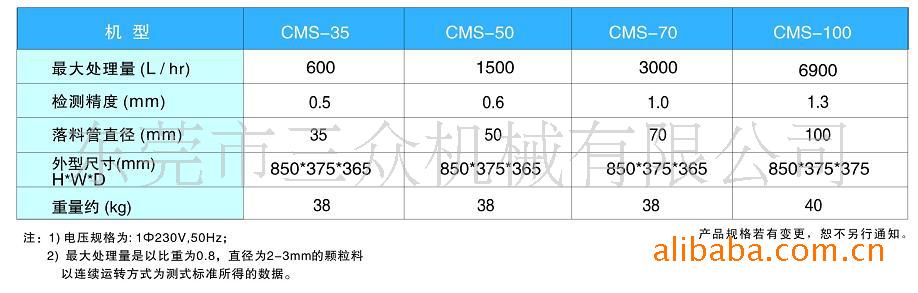 CMS系列金属分离器灵敏度高,能快速检测并自动分离塑料原料中所含有的各种金属物质,如如不锈钢、铜、铁、铝、铅、锡等。其原理为含有金属杂质的塑料原料通过分离器的料斗下方的入料口时,入料口位置安装有一个环形的金属探测仪。探测仪能快速准确的发出信号,启动分离阀,降含有金属杂质的塑料通过排料口排出,实现分离。该系列有四种机型,处理量为600L/hr.~6900L/hr, 可满足客户不同需求。