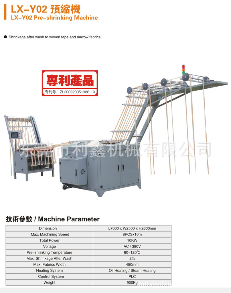 全自动织带预缩机主要应用于织带染色后的预缩,定型处理,它包括进散带装置(张力器可调节不同弹性的带子)、预缩装置、加热和冷却油箱、收带装置,共4部分组成。其中,预缩装置(原装进口硅胶毯和加热辊轮),使用过程中,可通过调节皮带与加热辊轮的位置,实现织带缩率的控制,完成预缩的同时,又对织带进行了定型处理,预缩效果非常好。联系电话:13322606289联系人;谭先生水提箱9,科。系1单器亚员,永营研获市的年9作同于55、型机