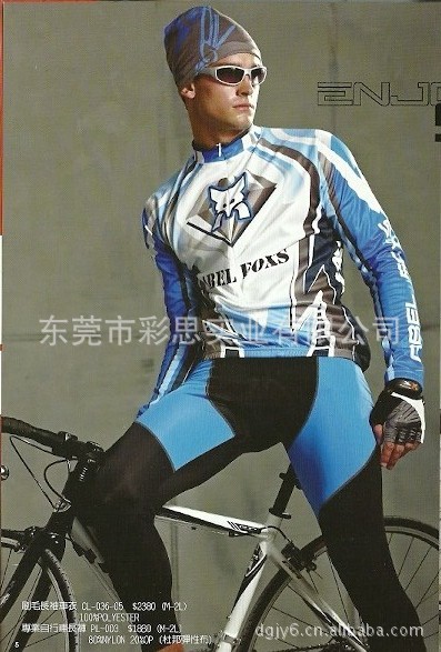 【面料介绍】:骑行服采用耐冲击度强、弹性好、耐磨性好的100%全涤纶(Polyester)网眼布。骑行裤采用80%涤纶(Polyester)和20%莱卡(Lycra)高弹性面料。