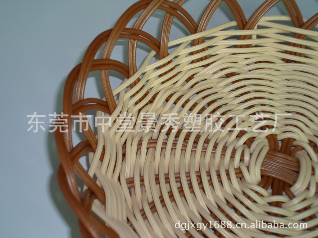 我公司是一家专业仿藤制品,手工艺品制造厂商,有近80名民间艺人,月产能80000只以上,材质为PP复合塑胶藤料,符合欧洲环保标准,并通过德国LFGB食品安全接触测试,无毒无味、耐水洗、不会因潮湿变质发霉,可在100度高温下洗碗机里清洗。