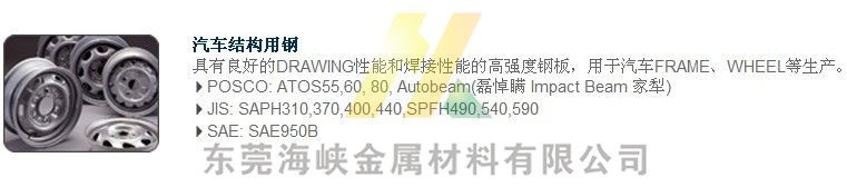 9.汽车零部件用冷轧钢板及钢带:B320LW,B360LW(汽车车轮钢);B440QZ(汽车传动轴用钢);B350JL(轿车离合器用钢);