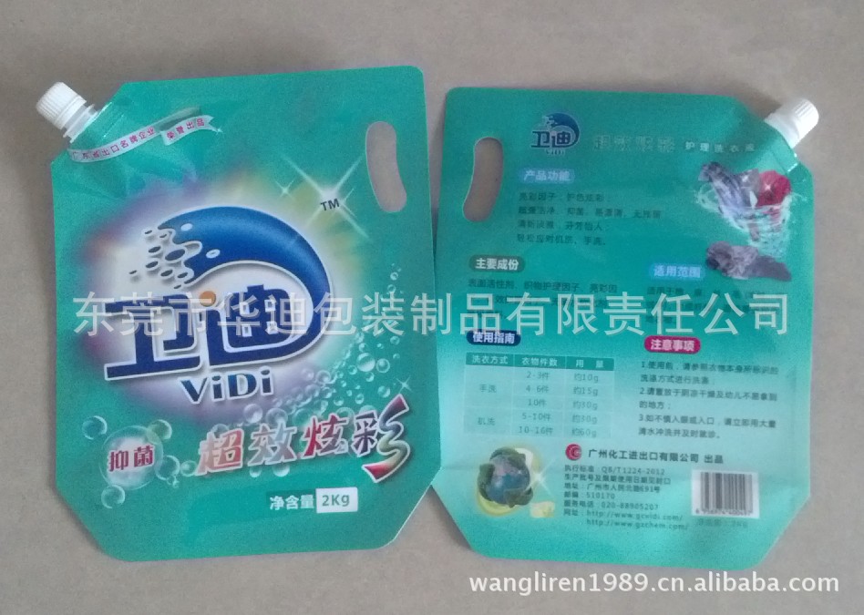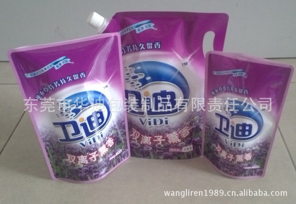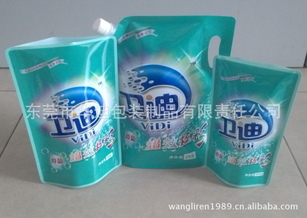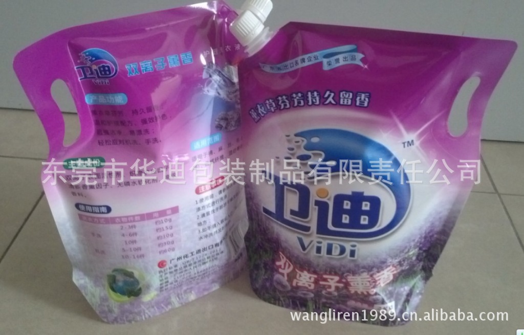 供应洗衣液吸嘴袋复合袋 吸嘴袋的材料结构:PET/NY/PE,NY/PE,NY/CPP,PET/AL/NY/PE,PET/AL/NY/RCPP