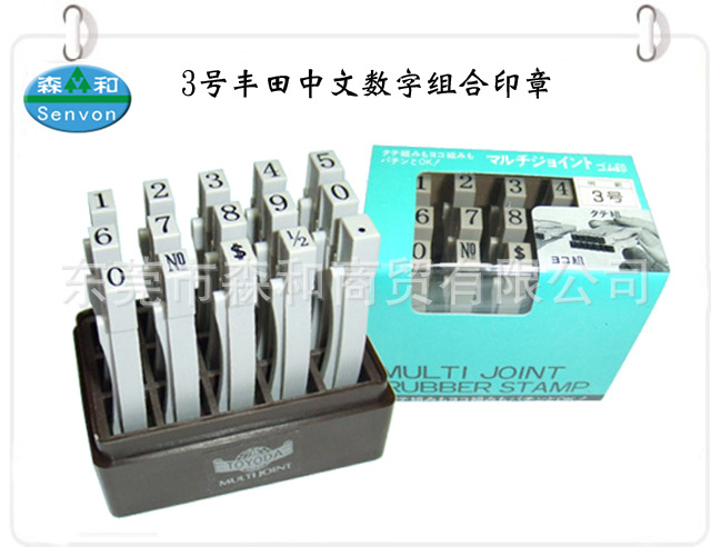 2、中文“0-9”10个数字以及5个常用字符共计15枚为一套丰田(TOYODA)中文数字组合连接印章,英文“A-Z”26个字母以及4个常用字符共计30枚为一套丰田(TOYODA)英文字母组合连接印章。