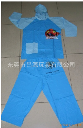 1.pvc学生雨衣共由多片PVC组成,印刷部位采用丝网印刷工艺印刷上各种图案后裁成方片,其它部位由裁剪部裁成方片。