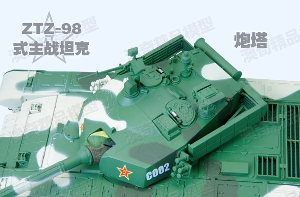 98式主战坦克(正式定型时被命名为99式)是中国第三代主战坦克,综合性能达到世界先进水平。该坦克上世纪80年代研发,因种种原因试车几经延迟,1999年10月1日阅兵式上正式公开。由于成本因素估计该坦克不会大量装备我军。98式主战坦克采用了883千瓦(1200马力)的涡轮增压中冷式大功率柴油机,最大公路时速达70公里/小时,0-32公里加速时间为12秒。产品参数尺寸:355*140*90mm比例:1:35材质:合金、ABS塑料 功能:静态模型、高度仿真产品实物图