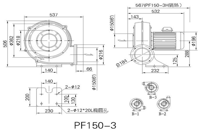 PF-1503全风直叶式低压鼓风机的尺寸图: