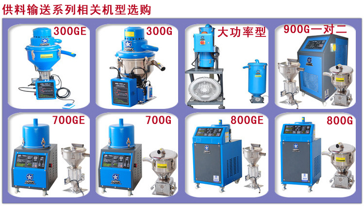 德力牌分体式真空填料机适用于长距离输送原料,主机与料斗分离的设计可满足客户使用需求。DAL-700G / 800G / 800G2适用于一台对一机组合,DAL--900G2/900G3/900G4适用于一台对二机组合。各机型均采用不锈钢料斗,确保原料不受污染,配有高效高压风机,兼具轻便耐用、吸力特强、安装简便、操作容易等特性。德力该系列产品具有功能强大,安全可靠等特点,是塑料行业及其它如食品,饲料等行业之必备自动化高效设备。