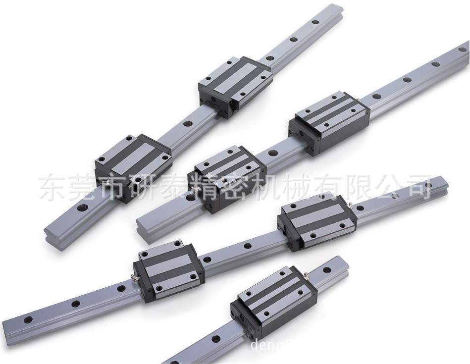 作为导向的导轨为淬硬钢,经精磨后置于安装平面上。与平面导轨比较,直线导轨横截面的几何形状,比平面导轨复杂,复杂的原因是因为导轨上需要加工出沟槽,以利于滑动元件的移动,沟槽的形状和数量,取决于机床要完成的功能。例如:一个既承受直线作用力,又承受颠覆力矩的导轨系统,与仅承受直线作用力的导轨相比.设计上有很大的不同