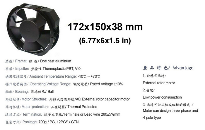 为弘的交流风扇采用外转子电机具有最高的风量、,最高静压、较低的电流,最高的效率和竞争价格的最高水平。多项专利证明我们的设计能力。我们可以协助客户解决问题关于热量。与此同时,代理人想要的。主要产品:全金属ac风扇(防紫外线,Endure-high温度、钢叶轮)、外转子交流风机、轴流风机、工业扇、排气风机、冷风机、电机设计(排风扇、浴室风扇、工业扇)。