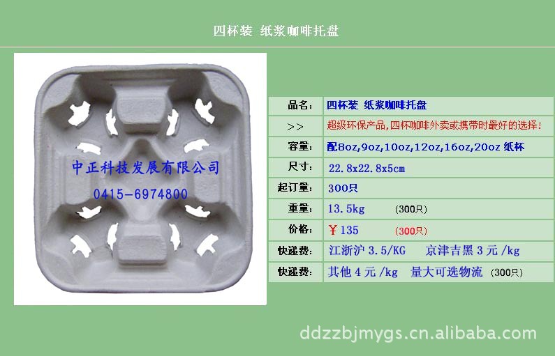 长年供应环保纯纸浆咖啡杯托,不添加任何化学试剂,透气性好,无毒无污染,可循环利用,可降解的绿色环保餐饮(咖啡、茶水、可可、饮料等)包装制品,是国内外各餐饮店,大型超市,出口商,环保人士等的首选.