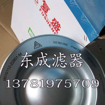 复盛油气分离器9610112-22801-M选用耐腐蚀的高效超细纤维过滤资料制作。当 0.01-1 μ m 油气混合体通过时,滤芯外表凝聚成大的油滴,油滴受重力作用流向滤芯底部并在底部积聚,然后通过回油管流回油箱。经分离后的压缩空气含油量极低。