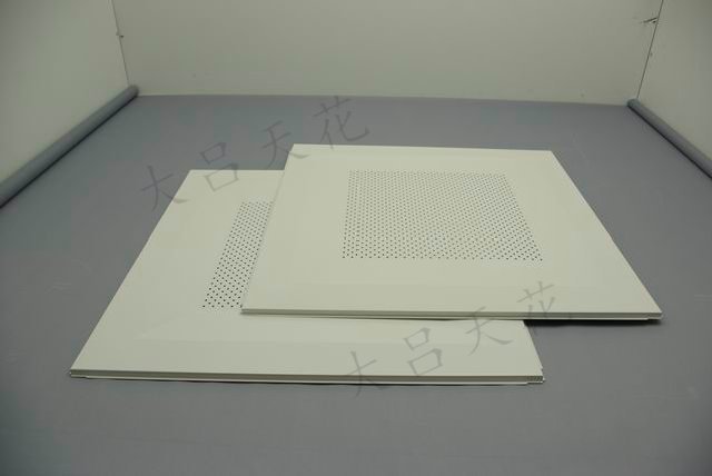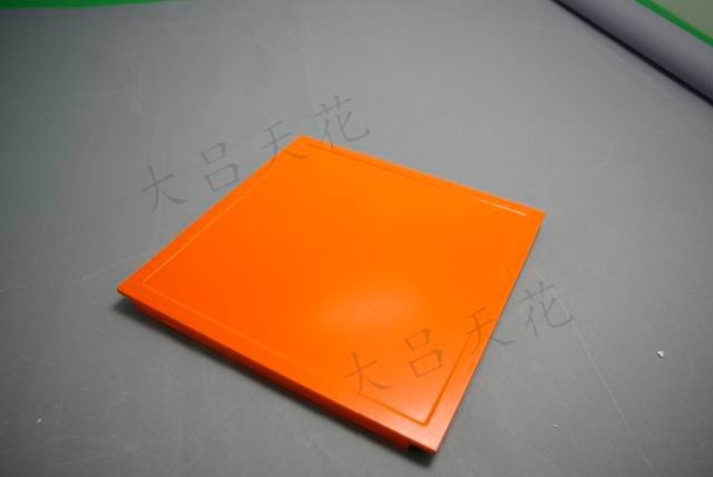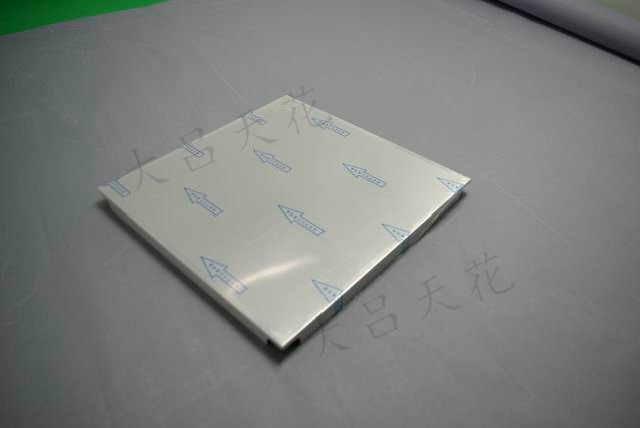 大吕明骨方型扣板厚度为0.5 mm、0.6 mm、0.7 mm、0.8 mm、0.9 mm、1.0 mm、1.2 mm。扣板采用模压成型,标准规格为 350x350mm、600x600mm、600x1200mm。表面涂层一般粉末静电喷涂或聚脂漆喷涂、辊涂,也可选用拉丝和阳极氧化表面处理。