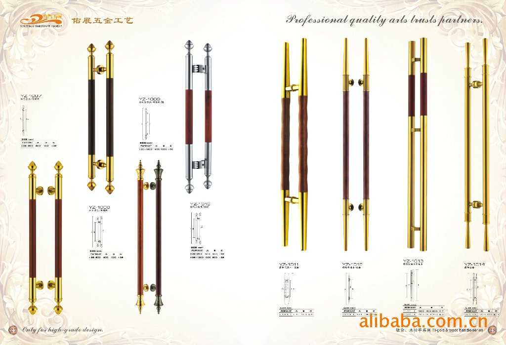 佑展工艺拉手厂专业生产各种高档豪华大拉手,不锈钢拉手,各种五金拉手,水晶拉手,仿古拉手,浮雕拉手,合金拉手,浴室小拉手等,各种电镀颜色的工艺都能达到客人的要求,各种工艺的五金造型只要能提供cad或施工效果图,我们依图加工出的工艺拉手都能让您满意!我厂是一家集设计、生产、销售和服务为一体的专业厂家。产品种类繁多,款式豪华典雅,工艺精细,畅销欧洲、东南亚及国内大型建材市场,在业内拥有良好口碑,在市场深受消费者青睐。