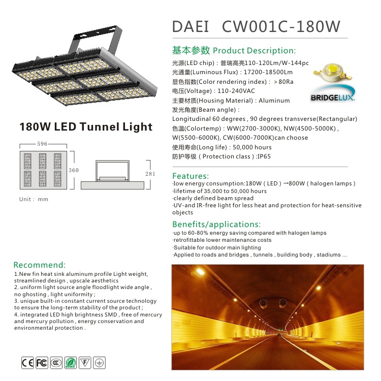 三年无忧质保-隧道照明工程 LED路灯LED隧道灯LED180W 明纬电源