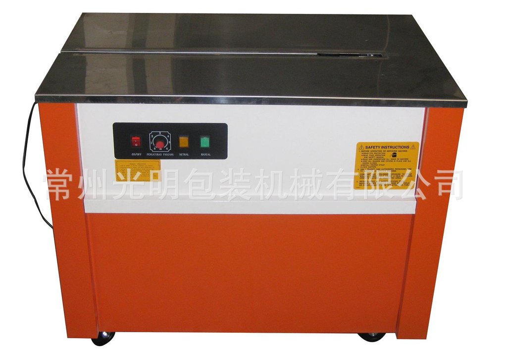 打包机是以聚乙烯塑料带为捆扎材料,主要用于商业、邮政、铁路、银行、食品、医药、书刊发行等行业的纸箱、纸包件、柳编箱、布包件的包装捆扎。