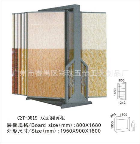 瓷砖展示架、地砖展示架、墙砖展示架、马赛克展示架、大理石展示架、洁具展示架、地毯展示架、墙纸展架、木地板展示架、天花板展示架、地板展示架、玻璃展示架、铝扣板展示架及资料架等等,水龙头展示架,洁具展示柜,卫浴龙头洁具展柜,热水器龙头展具,各种产品的色板展示柜,精品柜展架,书柜,衣柜等等木制产品柜。也可按客户的要求及尺寸量身订做特殊展具。