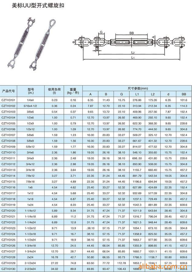 美标UU型开式螺旋扣常州通海生产,质量优信誉好,