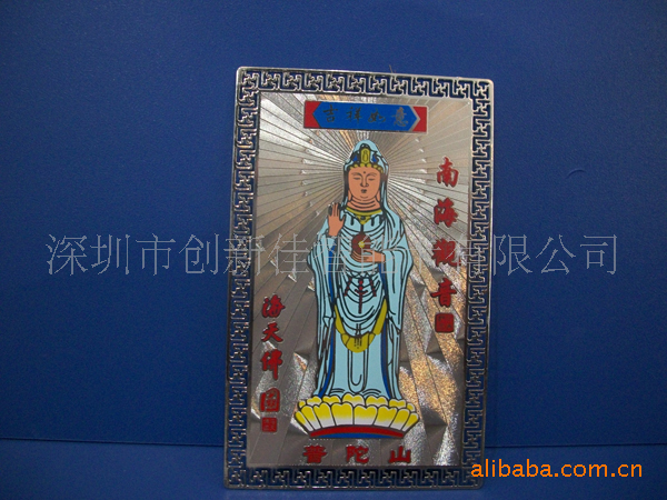 腐蚀电镀、填漆等多工序精工制成。它具有独特的浮雕立体感和真金般的色彩,是制作高档佛像金卡,