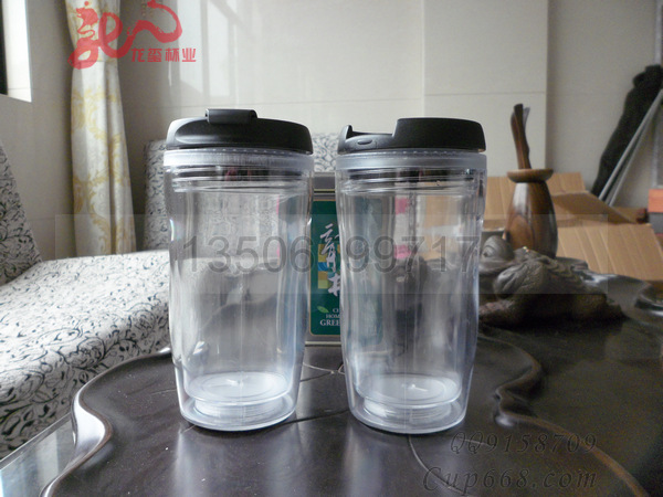 双层塑料杯,中间插广告纸,广告展现产品~