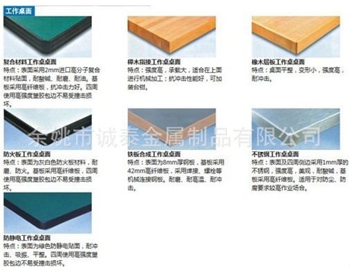 工作台可以根据客户要求加调节脚,台面可选高分子复合台面、防火板台面、不锈钢台面、铁板合成面、榉木台面、橡木层压板台面、防静电台面、电木板贴面等。
