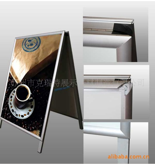 铝合金可选20、25、32,四面开启式框架易于安装画面,框架材料有2-4.5cm多种尺寸可选,拼接角有圆角、斜角可选。画框通过支架连接,可做成海报框海报架,有“A”型、立杆型等款式,有单、双面、带眉头、注水、弯脚、电动、铁皮、铁脚等多款可选,画框选用UV搞反射PVC薄片保护画面,防止画面褪色,有效地展示广告画面,使用寿命长!
