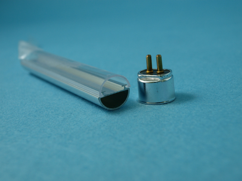 LED日光灯外壳是一款用在现代最具节能灯管上的配件,LED日光灯管配件。日光管面罩采用半圆设计,使用日本帝人/日本三菱/日本陶氏PC材料(聚碳酸脂)挤押成型。T5规格:15*1MM,配各1/2铝型材1/2PC日光管面罩组成一套LED日光灯管外壳。其它优质的透光效果和高效的散热效果及精美的外观被LED生产厂商所用。