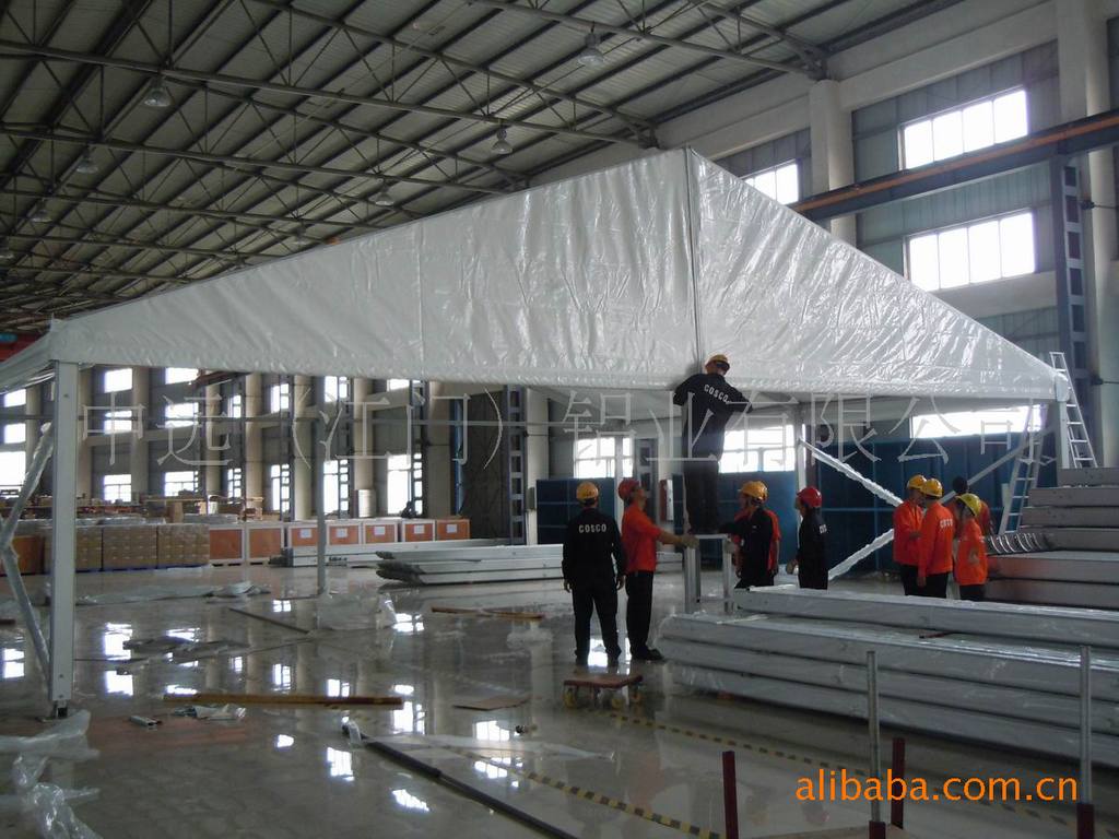 从熔铸,模具制造,挤压,型材加工,焊接,氧化处理,到PVC布裁剪、热合及组装,均在我司一站式完成,我们同时生产铁连接件,产品包括大型帐篷,锥顶篷,吊顶篷,拱形篷,多边形篷等, 跨度从3米至40米,广泛应用于各种户外活动。