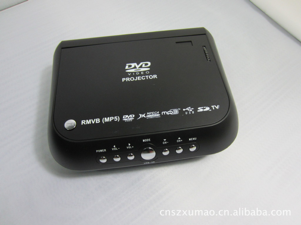最新推出一款最新款超薄超高清便携式家庭影院DVD投影机实惠版!带有DVD/VGA电脑接口/GAME游戏接口/SD卡/USB接口/AV IN/AV OUT/TV等功能的120流明投影机/投视仪/投影仪,解决喜欢外出看影院家庭的问题!超大屏幕DVD投影机风光面市了!直接放上DVD碟片对着墙壁就可以看大屏幕电影!想怎么看就怎么看,想看什么就看什么,你的地盘你做主!