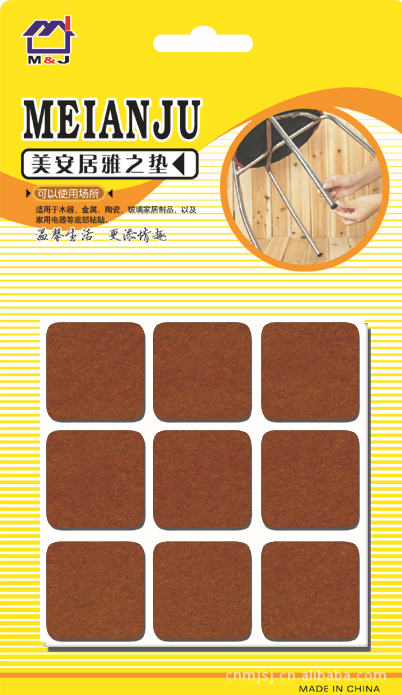 地板保护垫,可以稳固的粘于木质,薄板,金属,塑料等家具表面,例如可以牢固的粘附在桌子,衣橱,书橱,展柜,电视柜,办公桌等家具脚的底部,使得家具在地毯,木地板,瓷砖,帆布等光滑地面不易移动,减少与地板的摩擦和噪音,防止刮伤,撞花,损坏地板,地毯;有效的减少地板表面得损伤或变形。适用于家居,办公室,车间等任何环境。垫的背面有一层胶,可以粘在家具的脚上。胶的粘性性能好。外表美观大方,使用方便。
