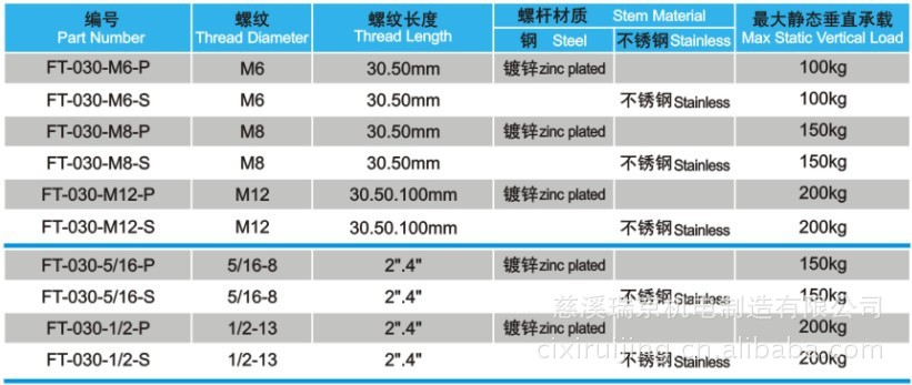 不锈钢类:螺杆均为不锈钢304材质,底座为增强尼龙或不锈钢304均可。