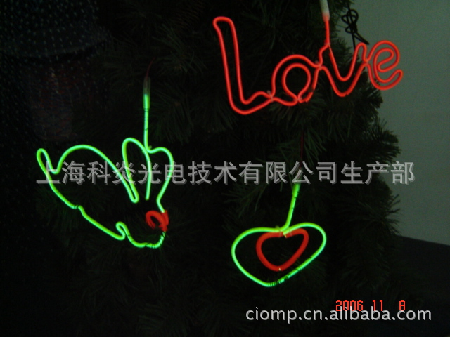 5)电致发光线产品可以直接使用透明胶带、胶水、别针、线钉、透明塑料卡等固定于装饰物体表面。应用如:玻璃、橱窗、家具、门窗、墙体等处。其使用方便快捷,安装无须专业人员指导。还可以使用扉边型缝扎于布料、皮革、服装表面及边缘。