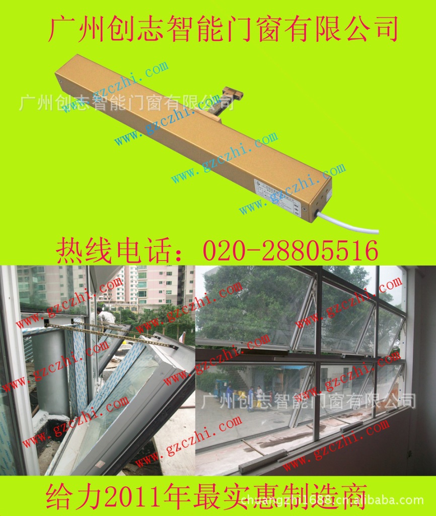 链式电动开窗器|电动开窗机|电动开启窗-电动窗电机配件适用于上悬窗、下悬窗、中悬窗、天窗、内倒窗、外倒窗、外平开窗、点式幕墙开启窗等各种窗型。精美的外形设计,内置超负荷过载保护,双电机同步功能。链条采用表面防腐处理的特殊材料(或不锈钢)制成,适合长期潮湿的环境使用。三个固定点的安装方法简单、方便而牢固。根据窗重选用200N、300N、600N等不同的推/拉力。360mm、600mm、800mm、1100mm等多种行程选择或可根据客户需要的行程而定制。大于10000次推拉与拉回测试,可在-5°C到+50°C环境工作。工作电流有220伏(通风窗)和24伏(排烟窗)可供选择,保护系数为IP30。可以配接风感雨感、温度感应器、烟雾感应器、紧急按钮、遥控等多种智能产品,实现智能一体化控制系统。