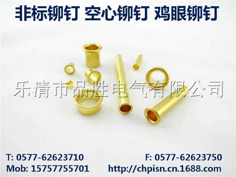 厂家直销——空心铆钉 鸡眼铆钉 管状铆钉 半空心铆钉 台阶铆钉 沉头铆钉 半圆头铆钉 平头铆钉 子母铆钉 实心铆钉 1、非标定做:来图来样,均可定制——定做定金加工,款到发货; 现货:现金结算 2、可随时依照你的产品需要变更规格大小。 3、材质:黄铜管、紫铜管、铝管 4、表面处理:酸洗、镀银、镀镍、镀锡…… 5、公司热线:0577-62623710 手机:15757755701(24小时) 公司主页:http://www.chpisn.com 诚 信 通:http://chpisn.cn.1688.com 有库存现货——∮3.9×0.4×8.5 有库存现货——∮5.9×0.4×7.0 |
