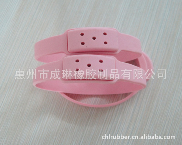 成琳橡胶硅胶驱蚊手环采用 100%固体硅橡胶经油压机压制而成;手腕带本身具有一定的张力及柔软性,因而容易变形并立即恢复;硅胶手环具备耐磨损,耐高温,不变形、无 毒、无味、对人体无副作用 等特点和 柔软、不开裂、使用寿命长、不刺激皮肤等优点 ,是真正的绿色环保饰品。