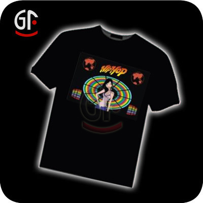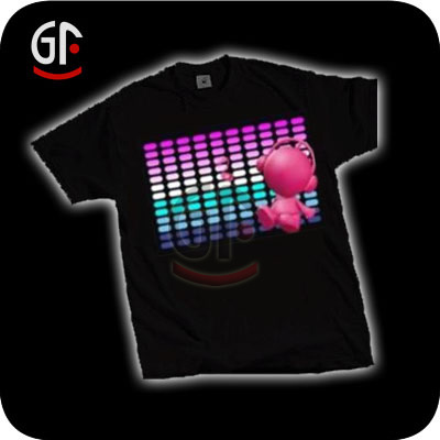 产品说明:由EL发光片,EL驱动器和T恤衫三部分组成的发光T恤衫:
