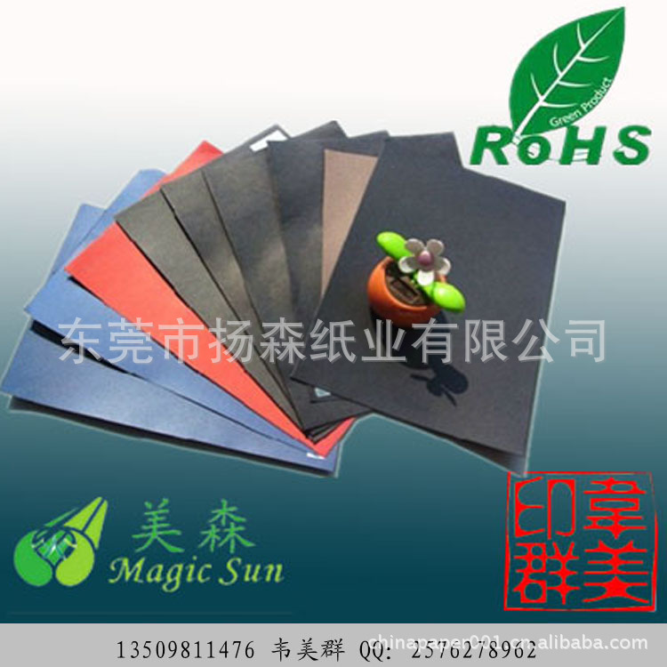 广东东莞扬森纸业有限公司,专业生产和销售各种色卡纸。紫色卡纸,橙色卡纸,绿色卡纸,红色卡纸,黑色卡纸,蓝色卡纸,咖啡色卡纸,天蓝色卡纸。主要经营黑卡、白卡、金银卡、充皮纸、压纹纸、珠光纸、双胶纸、白板纸、灰板纸、牛皮纸及特种纸加工。适用于各种印刷版,大型宣传画册。包装盒,礼品盒,首饰盒,请帖,贺卡,信封,笔记本封面等,深受广大客户的青睐。